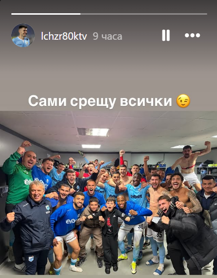 След успеха на Арда, който донесе сериозно отражение върху върха в класирането и остави „сините“ с десет точки аванс пред Лудогорец преди старта на плейофите, Котев публикува кратко, но съдържателно изречение в Instagram: „Сами срещу всички“, придружено от намигваща емотиконка. Макар лаконично, посланието бе прието от феновете като тънка реплика към Боримиров, който след дербито с ЦСКА заяви: „Знаем, че всички са срещу нас. Левски е винаги сам срещу останалите“.