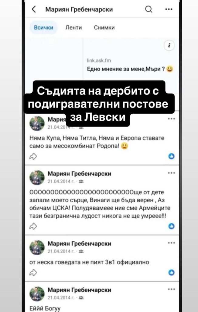 В левскарските групи в интернет пространството мълниеносно се разпространиха скрийншотове от личния профил на арбитъра, датиращи отпреди десетилетие, в които той не крие своите симпатии към „армейския“ клуб и отправя подигравателни реплики към Левски. Фрази, възхваляващи „червените“ и използващи обидни епитети към „сините“, станаха повод за лавина от коментари, като феновете се питат дали е възможно съдия с подобно публично изразено минало да отсъжда обективно в най-важния мач на България. Напрежението се засилва и от факта, че двубоят е от ключово значение за класирането в редовния сезон, а всяко спорно решение на терена ще бъде гледано под микроскоп.